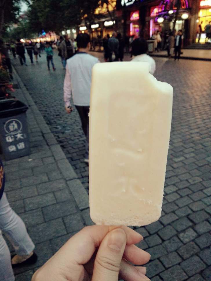 ▼看我輕鬆單手拍出當地特色的馬迭爾冰棍(其實就是我們古早味的冰棒,哈密瓜口味的)