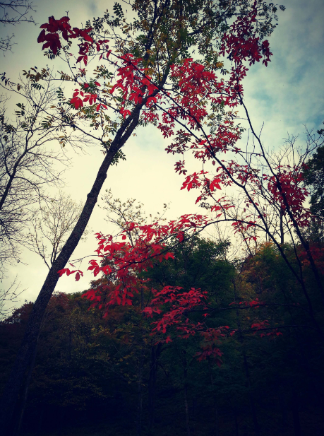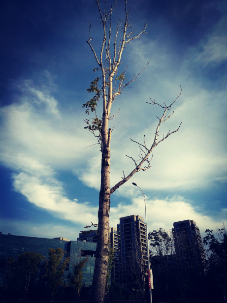 綠、黃、紅三色交錯,再加上枯枝與藍天,整個超級賞心悅目的~~
