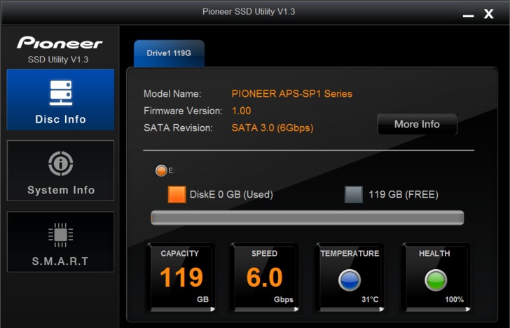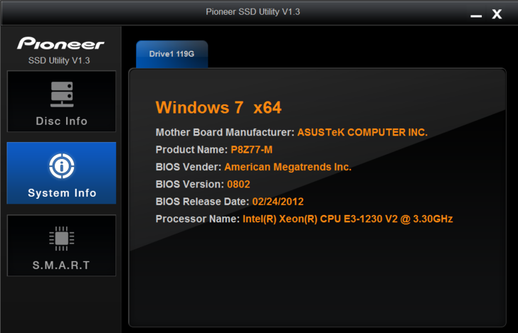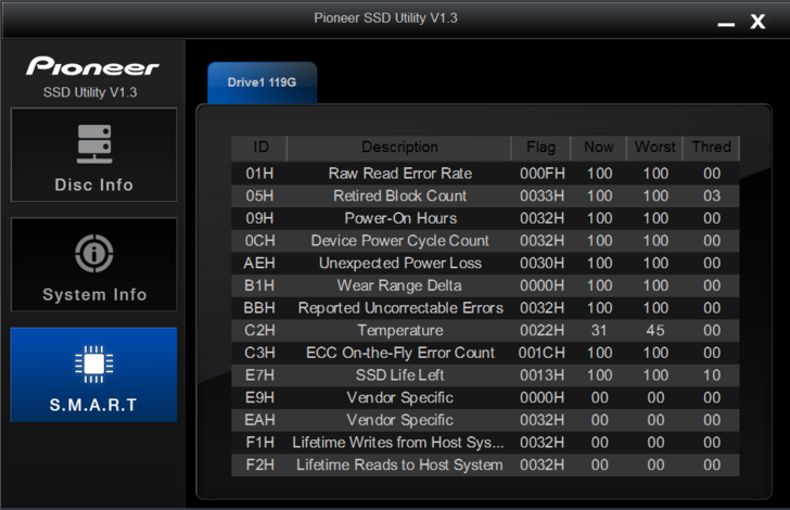 裝到我的電腦後,當然要實際跑跑看這顆SSD的效果是如何,Pioneer SSD Utility程式可以顯示相關資訊,Pioneer官網有提供下載。就像F1準備起跑前,前置作業都要先做好,確認一切都沒問題