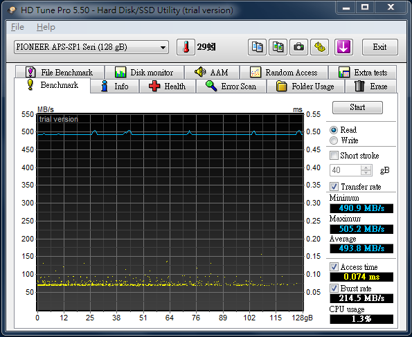 這顆SSD雖然是代工的,非Pioneer自己生產設計,但控制晶片韌體部分仍然是由Pioneer來開發,調教上算是有不錯的水準,畢竟掛上的牌子,是知名老品牌Pioneer,名聲可不能因此而砸了