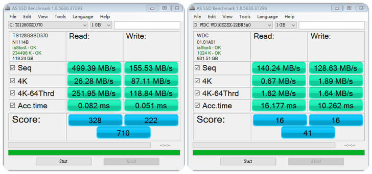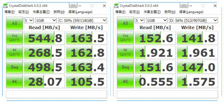 基本上兩顆硬碟的效能沒有特別突出,就是普普通通,不過市場定位MI的玩家應該夠用了。