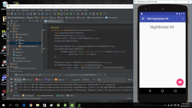 其實會用到這個是因為我想測試用程式去跑他GPU的效果,像是我有用matlab去跑出他cpu與gpu的比較,而VS本來是想要跑NVIDIA的CUDA,可是我VS裝錯版本……又懶得重弄只好作罷,但既然都裝了就用他做個OpenGL看看效果吧。然而win市集跟行動app也是未來的趨勢,就簡單弄了個程式來測試,尤其是android studio必須跑在jdk上,模擬器更是吃資源,好在nightblade mi很給力XD