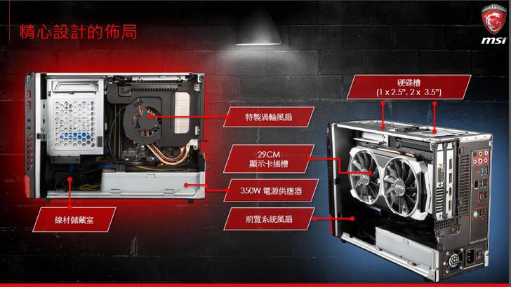 硬體方面:體積小但可放標準大小的顯卡,讓效能不受小主機限制、使用軍規用料(超導磁電感、鉭質電容、固態電容)效能提昇壽命更長、特殊的散熱設計跟用料、專業的音效輸入跟輸出、簡單的硬碟抽換、手機快速充電。