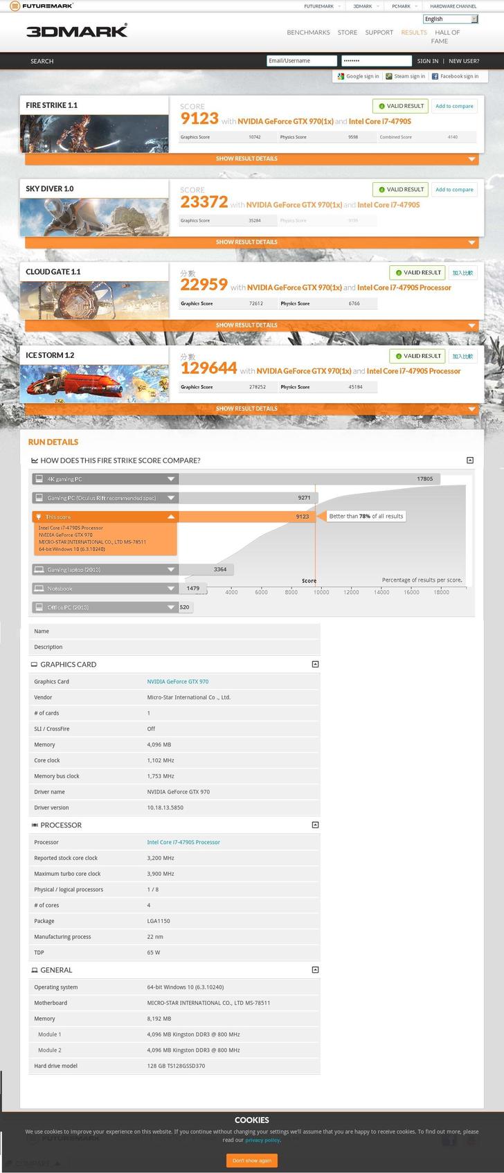附上測試結果網址 http://www.3dmark.com/3dm/8879271