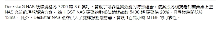 1,7200RPM,一般NAS專用碟多屬5400RPM,效能提升二成。