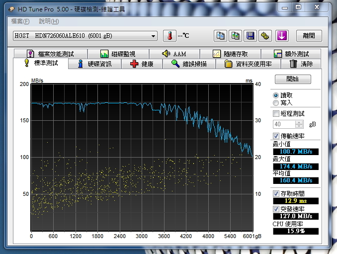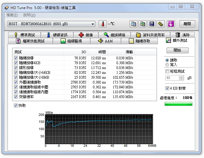 ▲ 隨機存取速度,在外圈皆有170MB以上水準,算是快速的。