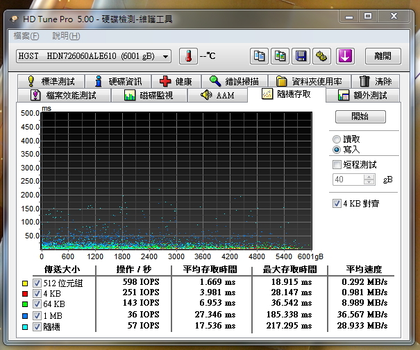 ▲ 首先是讀取的標準測試,速度比前一個軟體快了一些,存取時間12MS與官方數據差距不大。