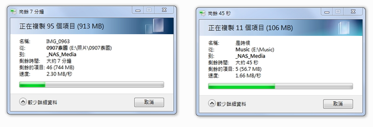 ▲ N2310的傳輸軟體沒有顯示傳輸速度,不過傳一個12GB的MKV檔,每秒有90MB,算是符合標準