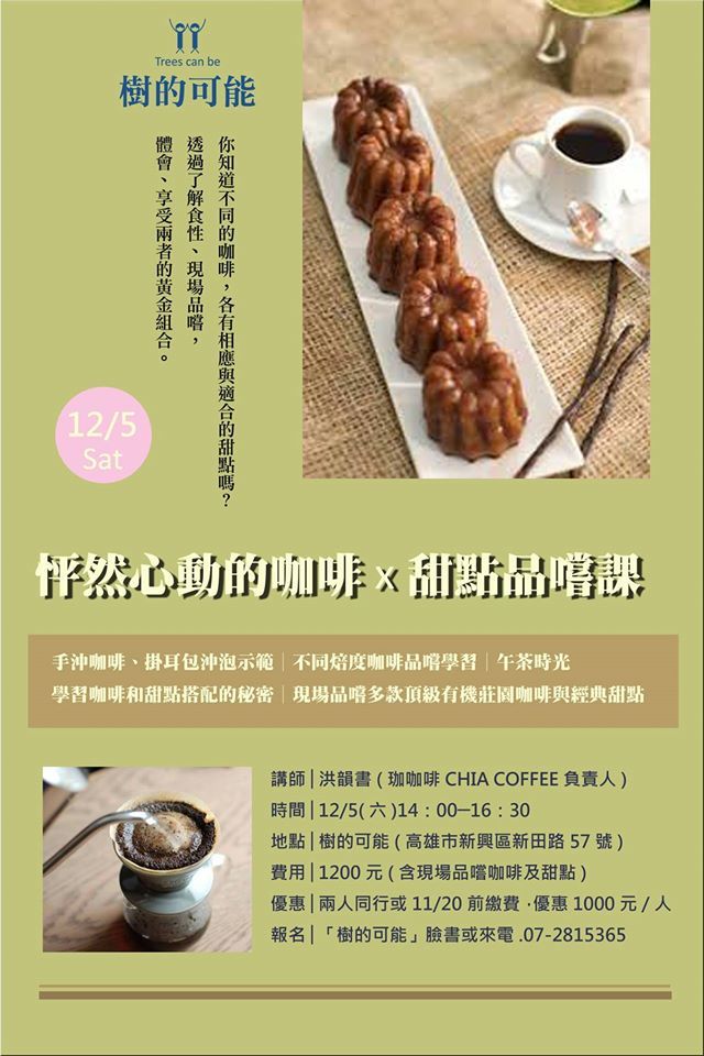 大受歡迎的咖啡課,這次我們再度邀請了有深厚咖啡經驗、熱情又認真的韻書老師,帶來令人怦然心動的咖啡x甜點品嚐課。