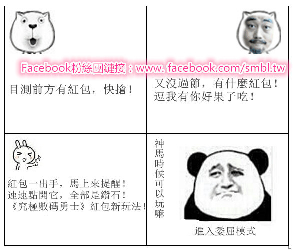 《究極數碼勇士》11月12日火熱開測,紅包玩法前來助陣!錢多多,人也變得任性起來了!全服玩家聽著,我xxx就要發紅包啦,搶到都是鑽哦! 暢快發紅包,有錢任性,個性宣言隨意寫! 比比看誰最多,人品爆發就是你! 夢回封測,更多豪禮請點FB查看~不介意被圍觀哦~ Facebook粉絲團鏈接:www. facebook.com/smbl.tw 讚 收藏 快速回應 引言回應