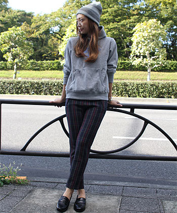 海軍花紋褲 X  帽T毛帽 X 黑色樂福鞋