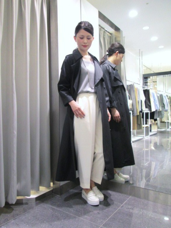 黑色風衣 X 白寬褲 X 白色樂福鞋