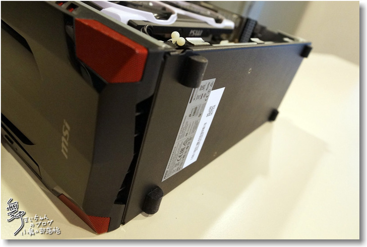 ▲左側則是主機板的位置,Nightblade MI搭載 Intel® Core i7處理器,效能一等一,並採用最高品質的第四代軍規料件:鉭質電容、超導磁電感以及固態電容,確保電腦在嚴苛的運算環境下運行更加穩定。