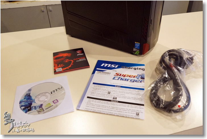 ▲最後是MSI NIGHTBLADE MI的配件一覽,包含電源纜線、驅動光碟和說明書