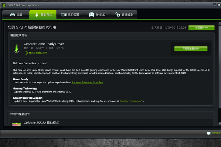 ▲這時巡一下顯卡的版本,發現有更新驅動程式,當然更新來保持最佳狀態