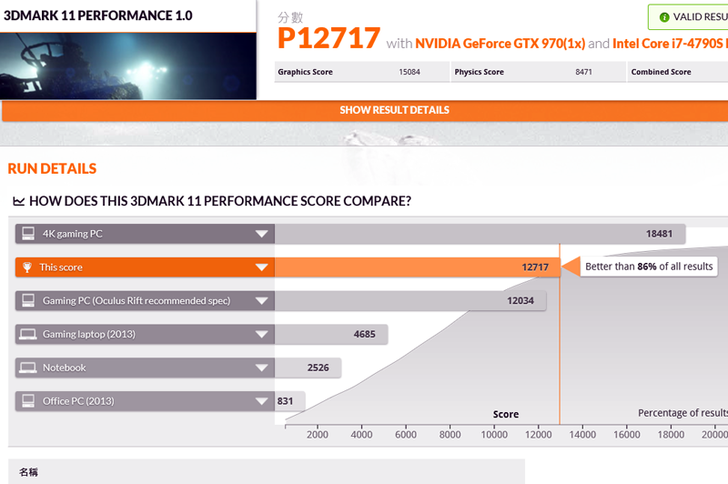 ▲在3DMARK11中,【MSI NIGHTBLADE MI】取得12,717分的好成積
