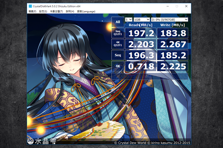 ▲而「CrystalDiskMark5.0.2」測出的成積如上圖,算是不錯的分數
