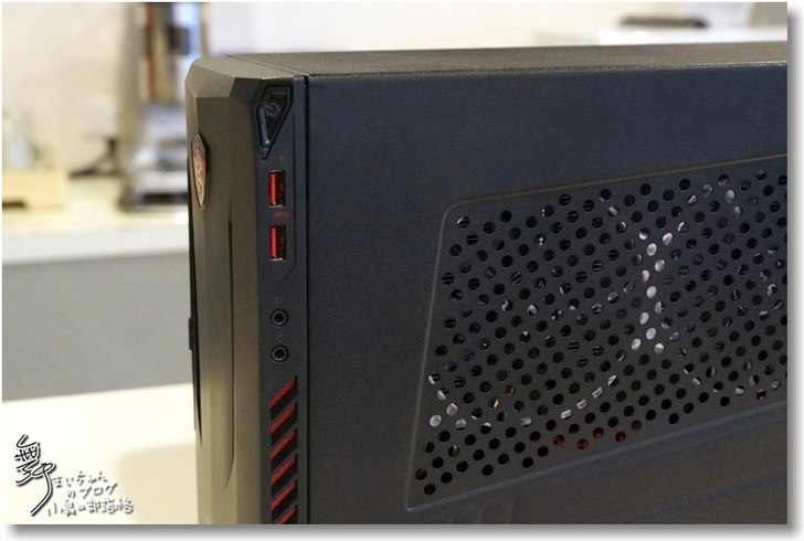 ▲在前面板的左側,也有多組前置端子;包含電源開關、USB3.0x2(with Super Charger)及麥克風、耳機端子等,方便玩家使用。
