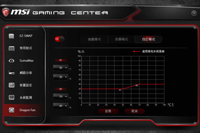 ▲最後的「Dragon Fan」 可讓玩家自己控制CPU並調整風扇的輸出,兼顧遊戲時的高效能與一般操作的寧靜度。