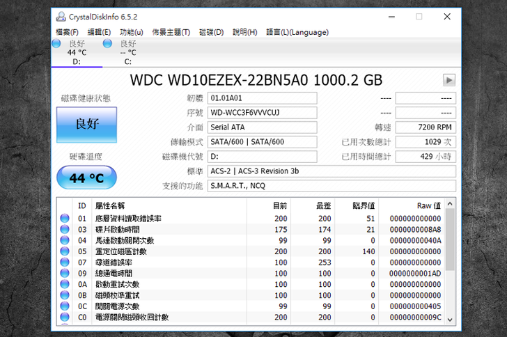▲除了顯卡外, 【MSI NIGHTBLADE MI】也內建了一顆傳統硬碟和一顆SSD,所以來測試一下硬碟狀況,使用「CrystalDiskinfo6.5.2」測出使用WD的1TB硬碟,轉速是7200rpm