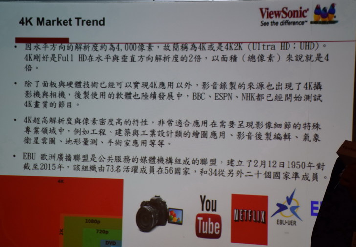 ▼ 首先先為大家介紹一下 4K目前的規格及市場狀況,4K 在水平的