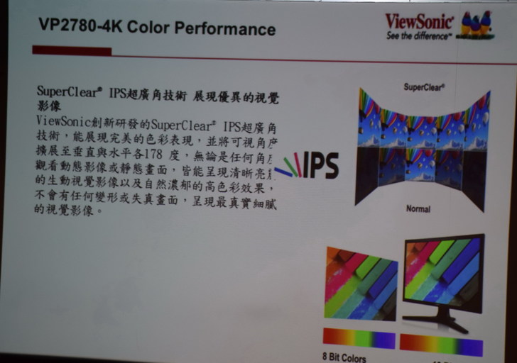 ▼ ViewSonic VP2780-4K 在色彩的表現上,使用了 SuperClear IPS