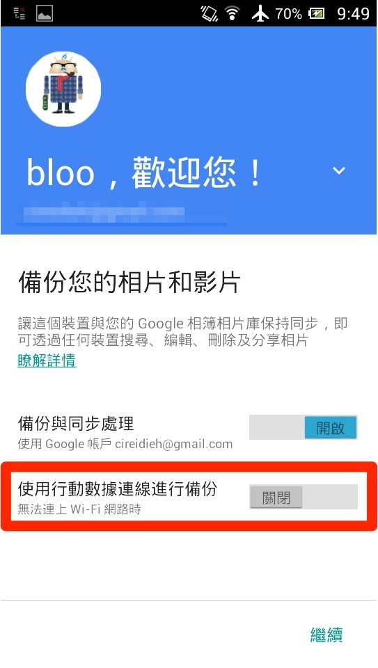 軟體下載後,會先詢問你「是否要使用行動數據連線進行備份」,一般來說我都會取消該選項,除了節省手機的網路流量,也節省外出時手機電量消耗。