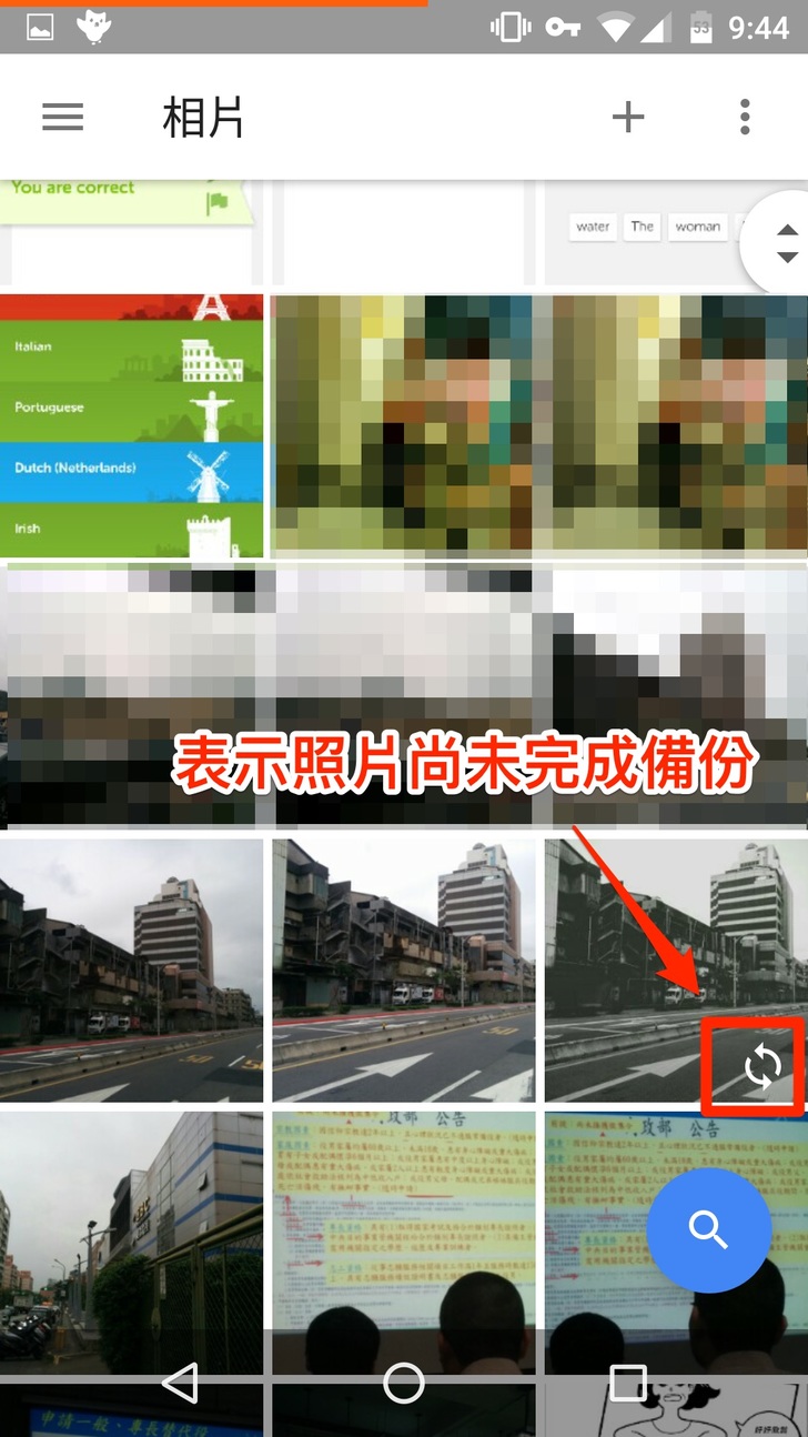 最後,如何知道照片是否有備份成功?主頁的照片若有頭尾相接的箭頭小圓符號,表示照片尚未備份。備份完成則符號會消失。此時,即可刪除「裝置資料夾」中的原始照片,你的照片不僅存好不遺失,還可以直接分享到不同的社群中。
