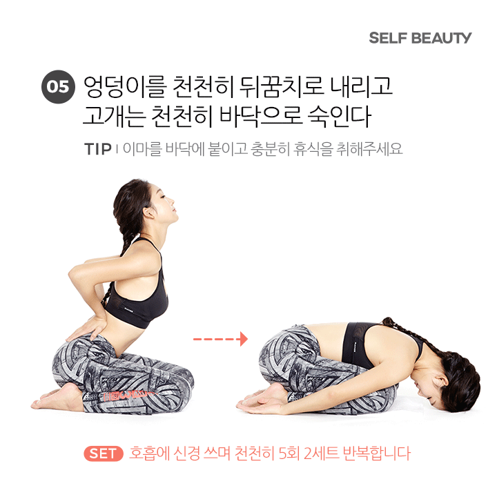 5. 將臀部慢慢坐下至兩腳跟間,接著將上半身往前彎