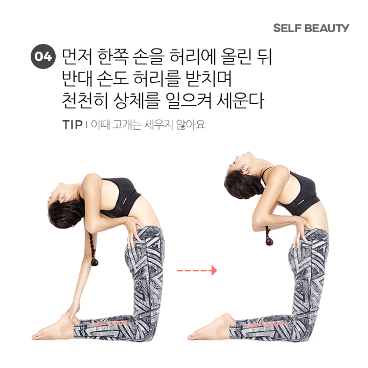 慢慢將上身與頭部挺直