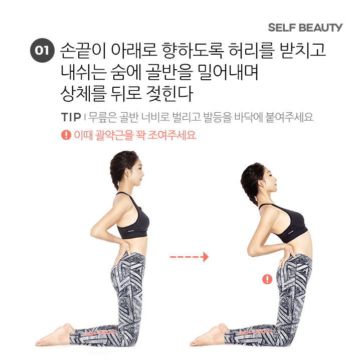 一邊吐氣,一邊將骨盆往前推,上半身往後彎曲
