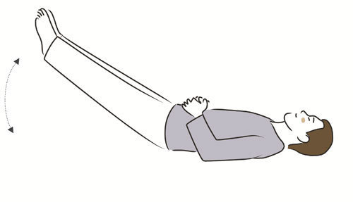 平躺,雙手放在腹部,用肚子的力量將兩腳往上抬起再放下,