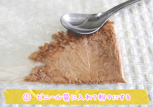 一樣先把碎塊壓細成粉,加入乳液就完美成為粉底液了