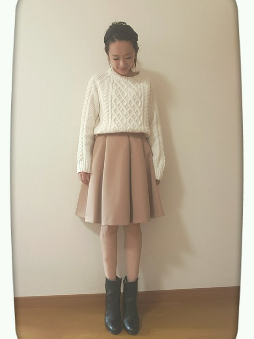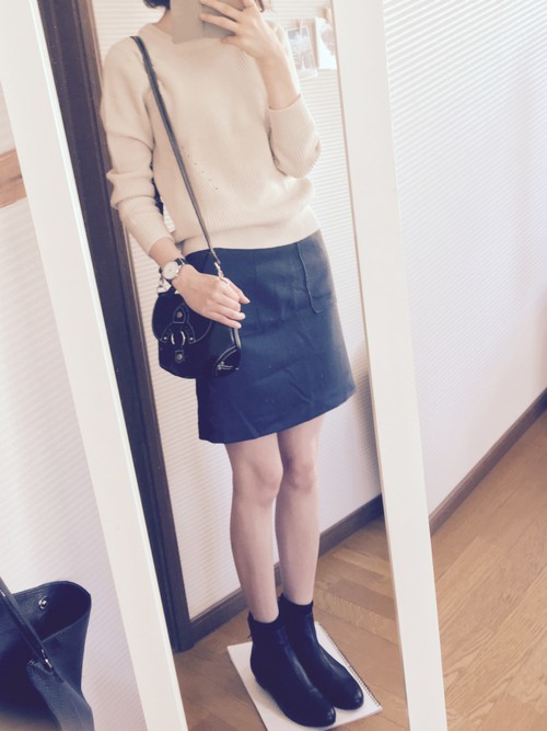 下身可以選擇駝色及膝裙搭配黑色踝靴,