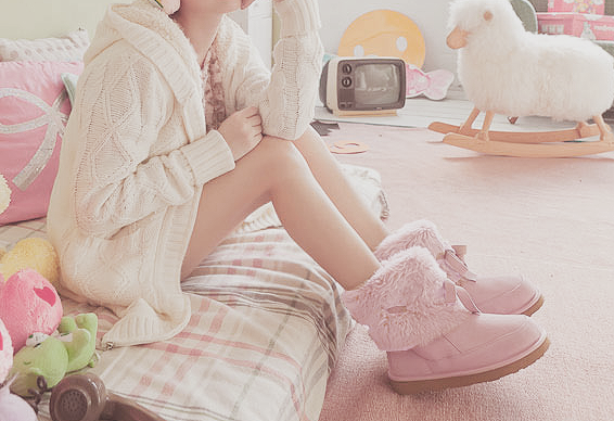 腳怕冷的女孩同樣可以搭上刷毛的厚襪。