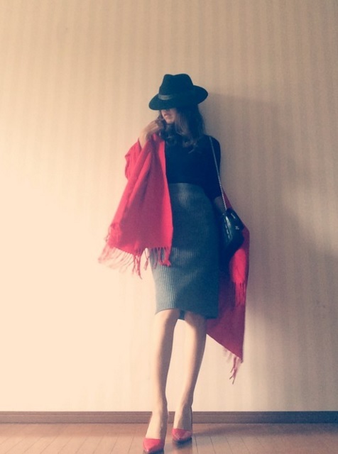 紅色的流蘇長圍巾是近年來不敗的人氣單品,同時可做為披肩來使用。
