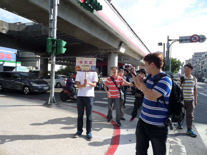 ▼ T客邦辛苦的工作人員也早已經舉著牌子等著大家來集合一同前往 UL台灣總部。