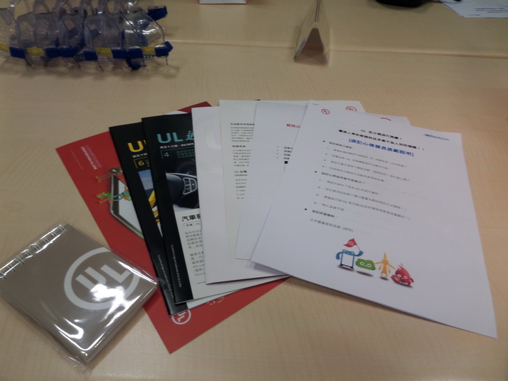 ▼UL提供的資料袋裡面有台灣UL的簡介、UL台灣測試實驗中心簡介、行事曆 、筆記本、本次活動行程等資料。