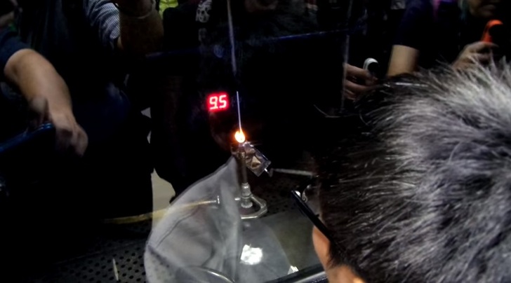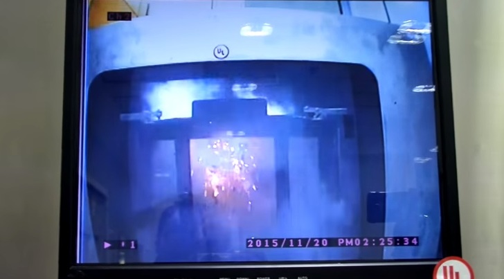 ▼我們看到的畫面是上一組測試後的錄影,畫面中看到是鋰電池起火爆炸的瞬間。