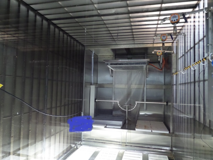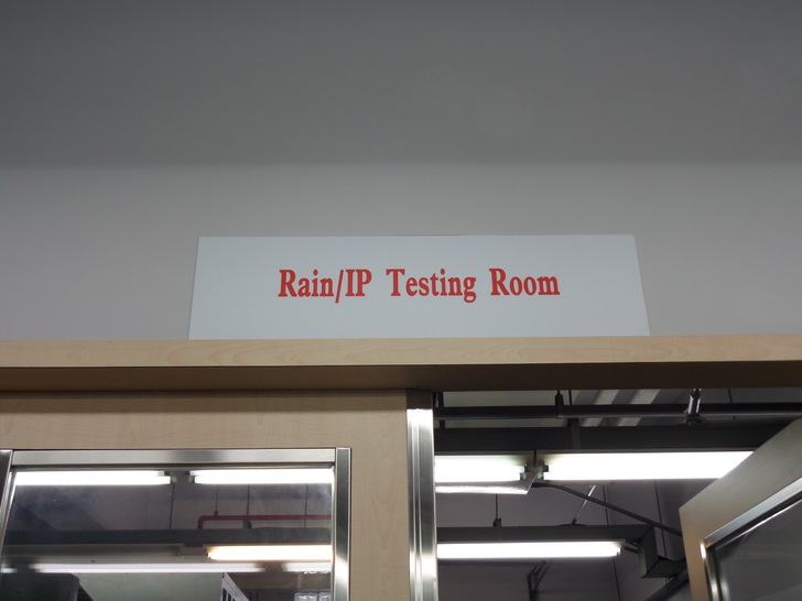 ▼接著來到雨淋測試實驗室,常聽到的各類產品防水等級數值 IPXX,就是在這個實驗室進行測試的,從等級 1 的滴水,到等級 8 的潛水測試,通通都可以做。(由於客戶產品保密問題,照片有經過處理)