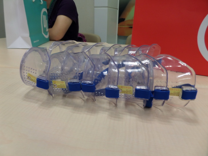 7. 烤麵包機外殼強度測試部份,講師拿出了一根空心塑膠管,為了準確的瞄準產品某部位,再運用撞擊球的重力加速度進行碰撞,藉此完成測試。