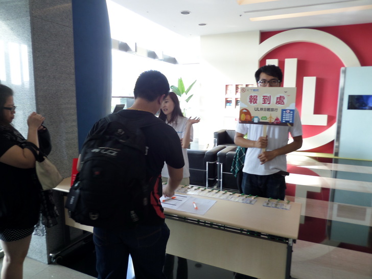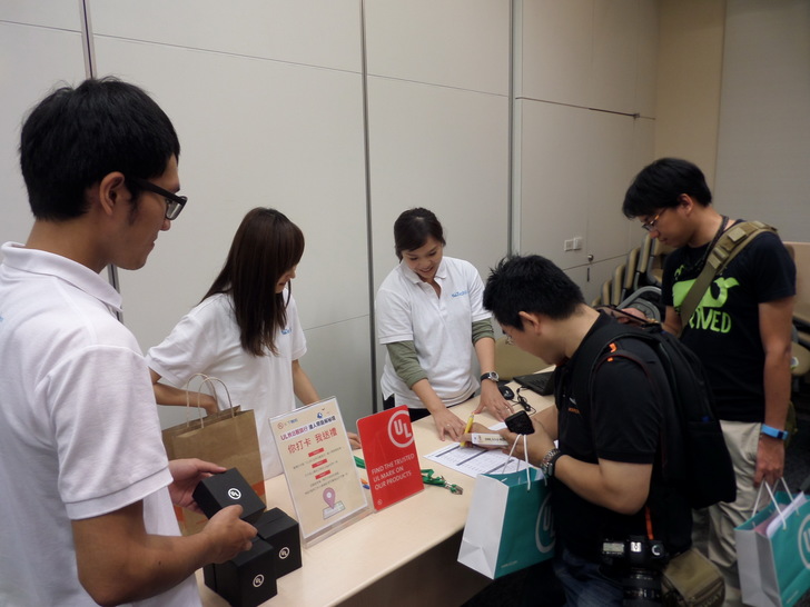 ▼ 工作人員請網友們先在大廳報到及與 UL LOGO 合照打卡,之後就會送精美的打卡禮。