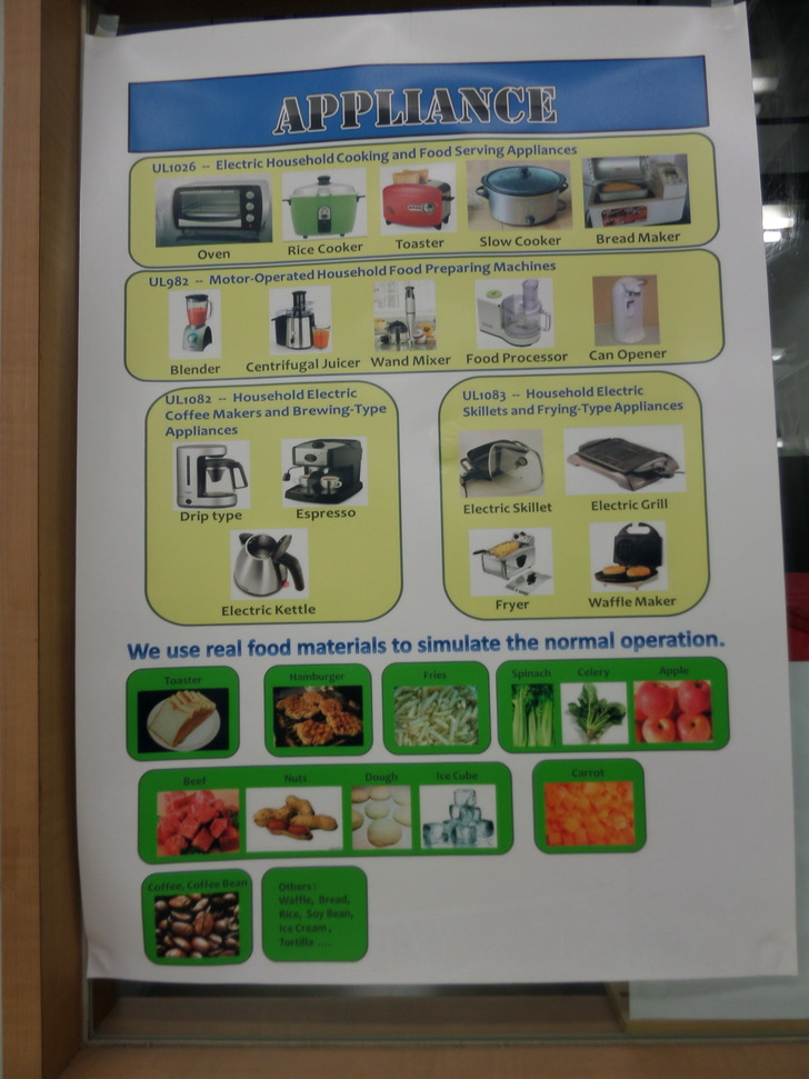 ▼接著來到家電產品測試實驗室,測試的項目像是麵包機、電熨斗、果汁機、烤箱…等常見的家電產品,模擬各種正常與異常使用情形對家電產品所帶來的影響。