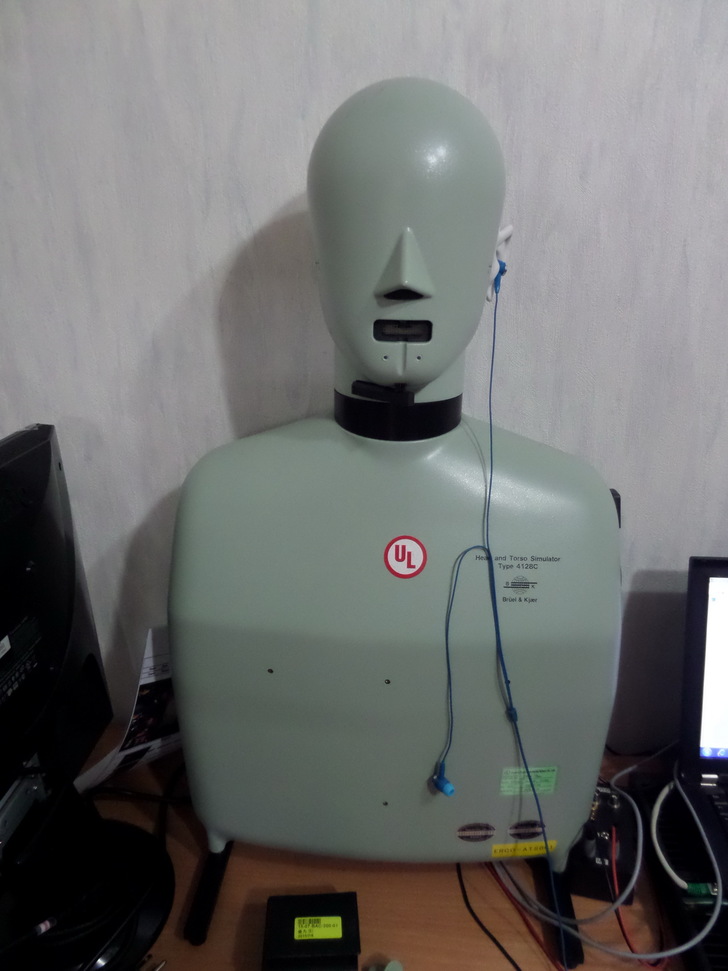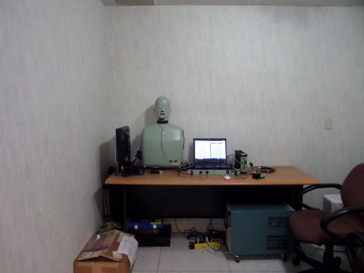 ▼接著來到隔壁的音壓測試實驗室,一進去就可看到號稱UL最輕鬆的員工,它的工作就是每天戴耳機聽著各種不同聲音,而這台人形機器的用途,就是可以把聲音轉變成可量測的電子訊號後進行相關分析,以判斷對人耳的實際影響。