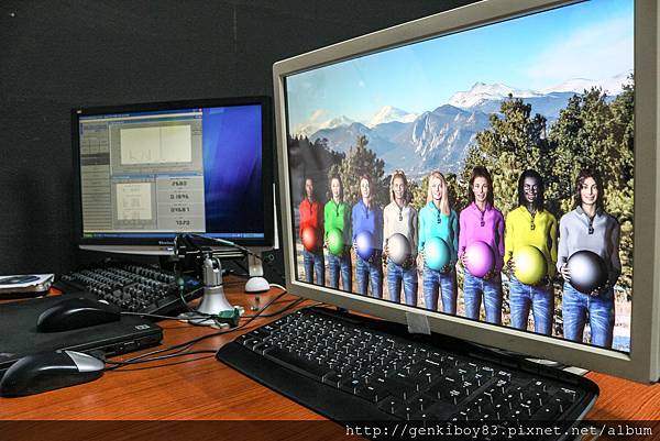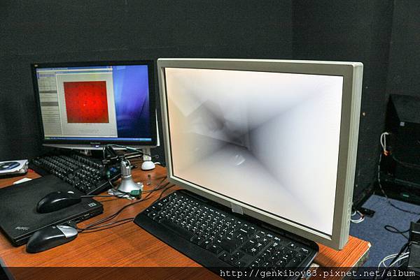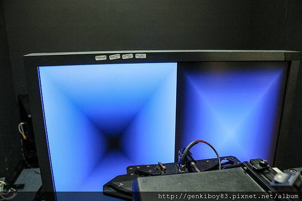 灰階的檢測,這張圖先將明亮度畫分為64等分,再切分成256階,夠好的顯示器應該要能清楚的看出來這些分區,雖然這台顯示器的廠牌被遮住了,但其實對顯器有研究的人應該看得出來是哪一家的XD