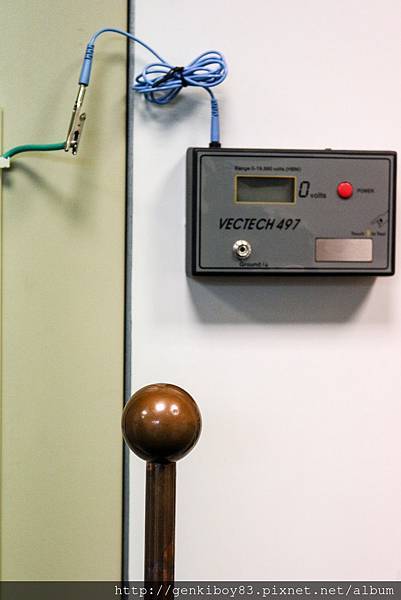 在進入另外屏蔽實驗室前門口有一根靜電的放電桿這是為了避免人體的靜電影響到儀器