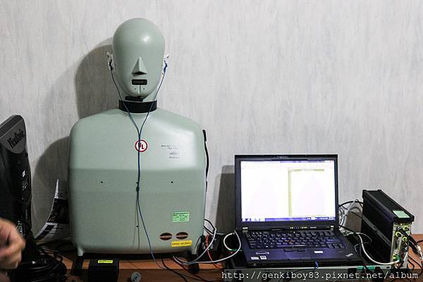 進入實驗室之後第一個看到的就是這個“半身人型靶”,喂! 不是啦!這是聲學人偶,專門用來檢測耳機音壓的人型儀器
