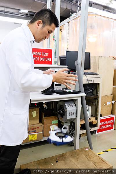這部份主要是檢測螢幕與耳機的實驗室,透過這邊的檢測可以了解螢幕的色域是否符合規範以及耳機的音壓是否有超標,能不能保護聽力,這區屬於“可愛動物區”,沒有危險性的實驗。這區是我最有興趣的一區,因為攝影工作的關係會接觸到很多色彩與螢幕的問題,所以很好奇專業的檢驗室到底是怎麼去檢驗螢幕的品質