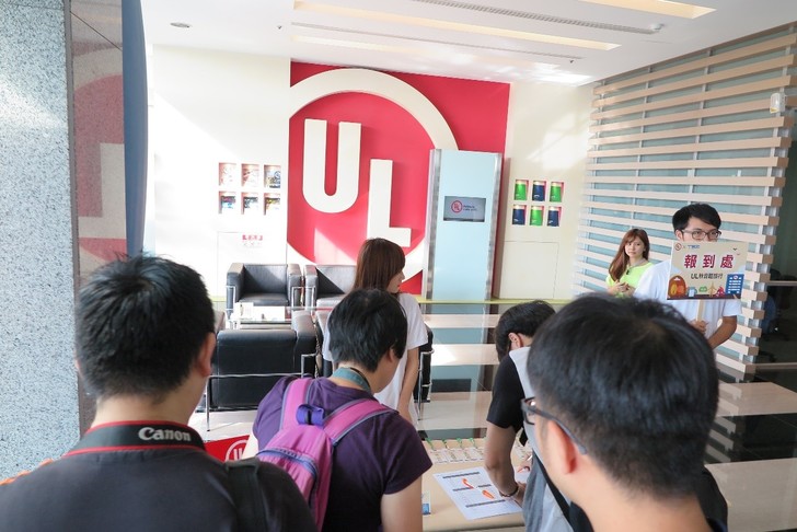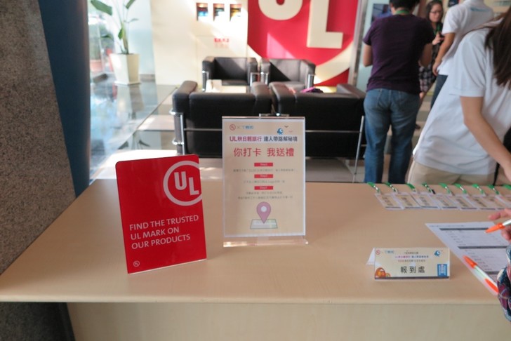 一進大門,就可以看到大大的UL標誌就在牆上,擺設有報名簽到處,處貴賓就在這裡簽到及打卡。