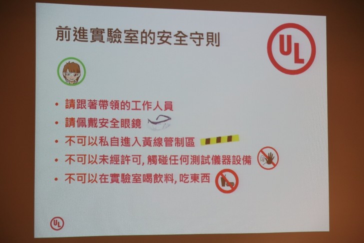 UL身為一家安規公司,我在參觀的過程中,完全可以感受他們對安全的重視與把關,從一些小細節就可以知道。